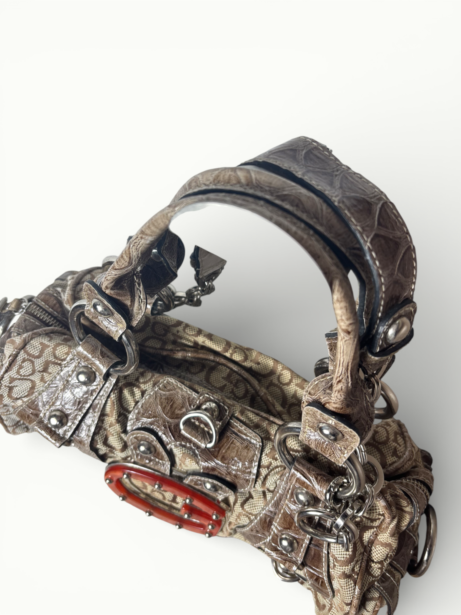 Designed with croc-effect leather trims, metallic hardware, and multiple decorative buckle details, this bag perfectly captures the early 2000s Y2K aesthetic. A true statement piece that adds character to any outfit, whether casual or dressed up.